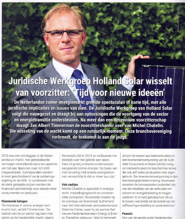 De energietransitie (je weet wel, de verschuiving van fossiele naar (decentrale) duurzame energie) om uiteindelijk ‘well below 1,5 degree’ vanuit het Parijs-akkoord te komen is in Nederland in volle gang. Als niche-kantoor (focus op hernieuwbare energie en energiebesparing) ondervindt RenewabLAW ook de gevolgen van die transitie. Ondermeer door de toegenomen werkzaamheden voor klanten. Ten gevolge
